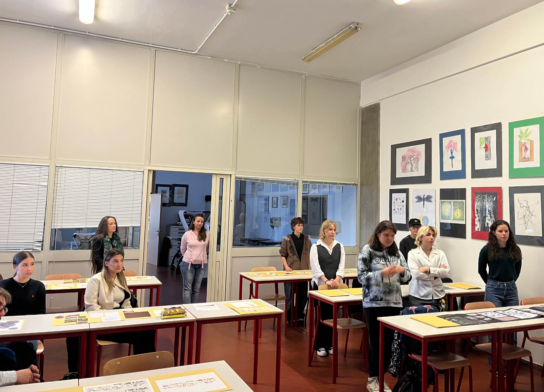 Laura Bertolin, member of the Board of Directors of Cantina Ramuscello and regional delegate of Confcooperative, was welcomed by the school principal, Enrico Quattrin, together with teachers Moira Piemonte and Sara Marzari, who closely and skillfully guided the students’ work.